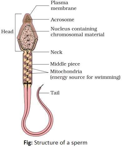 • Middle Piece: It contains numerous mitochondria that produce energy for the movement of the tail. This is important for the motility of the sperm which is essential for fertilization.