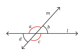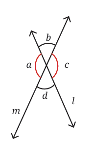 Let's look closer at what happens when two lines intersect. Consider line l intersecting line m as shown below: