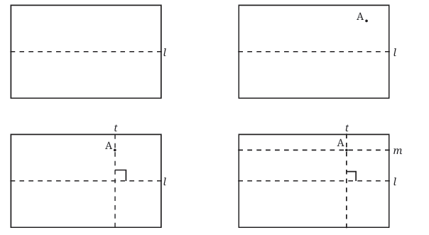 - Fold the paper so that the crease you make is perpendicular to line l, and it passes through point A.