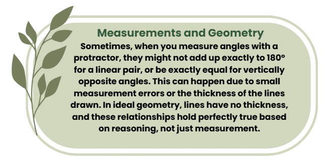 Linear Pair: Adjacent angles formed by two intersecting lines that add up to 180° (like ∠a and ∠b, or ∠b and ∠c). They form a straight line together.