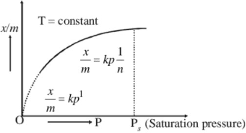 Where x = mass of adsorbate, m = mass of adsorbent, p = pressure and n are constants and depend upon the nature of adsorbate as well as adsorbent.