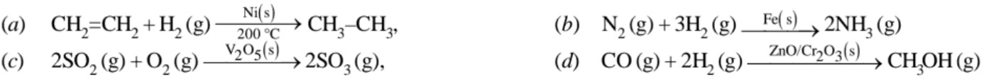 In heterogeneous catalysis, the catalyst is present in a different phase than that of the reactants, e.g.,