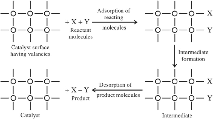(c) Occurance of chemical reaction on catalyst’s surface through an intermediate formation.