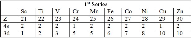 - Electronic Configuration: (n-1)d¹⁻¹⁰ ns¹⁻²; d-orbitals partially filled in ions.