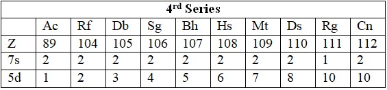 - 6d: Ac (89), Rf (104) to Cn (112).
