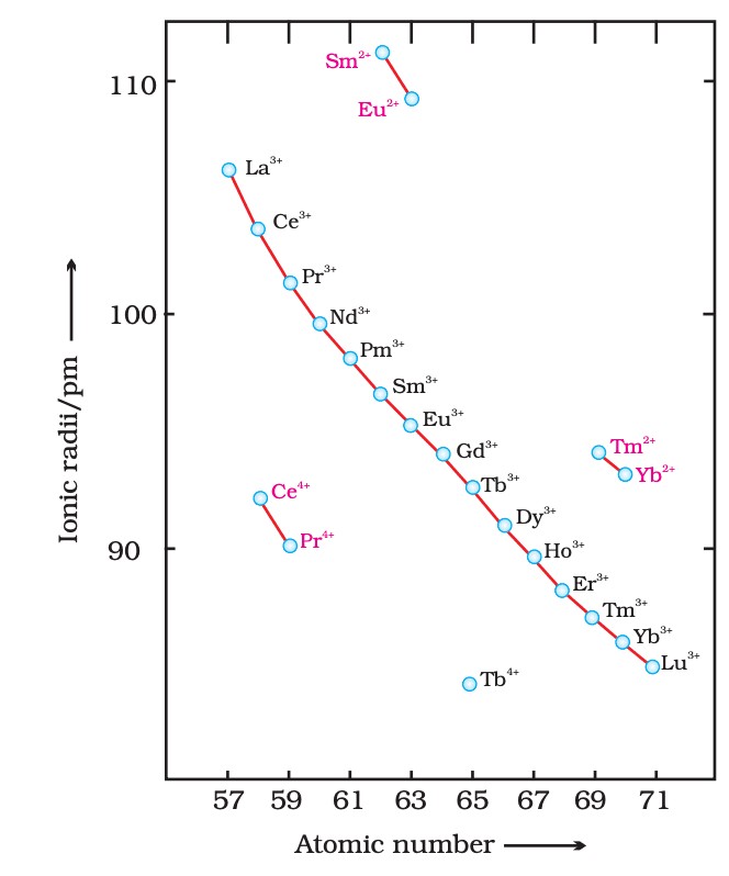 - Lanthanoid contraction: Size decreases due to poor 4f shielding.