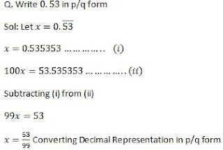 Recurring Decimal Expansion: The decimal Expansion do not terminates but a pattern of digits repeats in the decimal expansion.