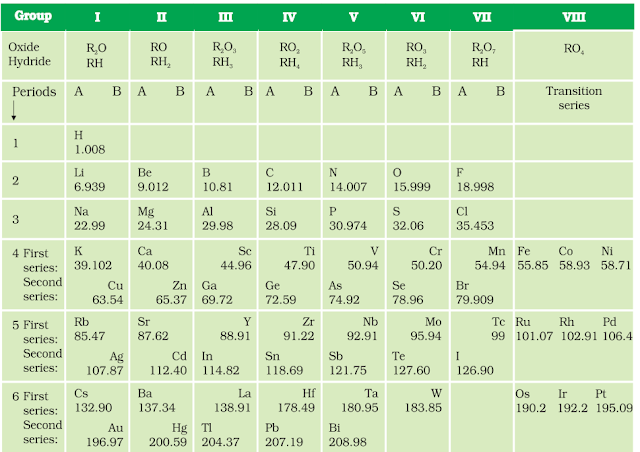 → Modern Periodic table has 18 vertical columns known as ‘groups’ and 7 horizontal rows known as ‘periods’.