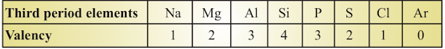 → Valency: No. of valence electrons present in the outermost shell of its atom. On moving from left to right in each period, the valency of elements increases from 1 to 4 and then decreases to 0.