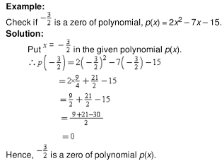 • A real number a is said to be the zero of polynomial p(x) if p(a) = 0, In this case, a is also called the root of the equation p(x) = 0.