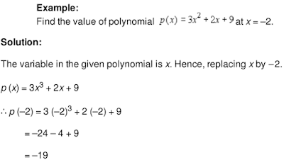 • A polynomial of degree one is called a linear polynomial e.g. 3x+2, 4x, x+9.